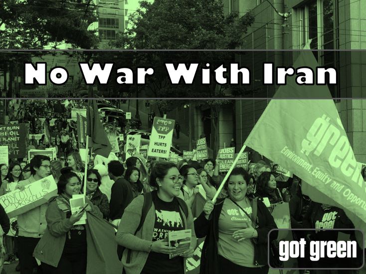As Got Green is not known for being an anti-war / anti-imperialist organization, nonetheless we believe that our work is intimately linked to broader people’s movements across the globe. We honor the sovereignty of all people, especially people that are directly and indirectly under the military and economic heel of the U.S. empire -- the people of Iran, Iraq, Puerto Rico, Afghanistan, Yemen, Venezuela, Bolivia, the Philippines, and Palestine -- to name only a few. We support the ongoing organizing efforts that are taking place around Seattle -- software workers refusing to build tech for the Pentagon and ICE, soldiers refusing to serve, counter-recruitment in our schools and communities, and all of us showing up for the wave upcoming actions against the impending war on Iran. Lastly, we call on Seattle’s City Council to issue a public condemnation of the war with Iran -- similar to the 2007 resolution passed to demonstrate our City’s opposition to the war with Iraq. Let’s build a future for people and the planet by opposing the war on Iran.